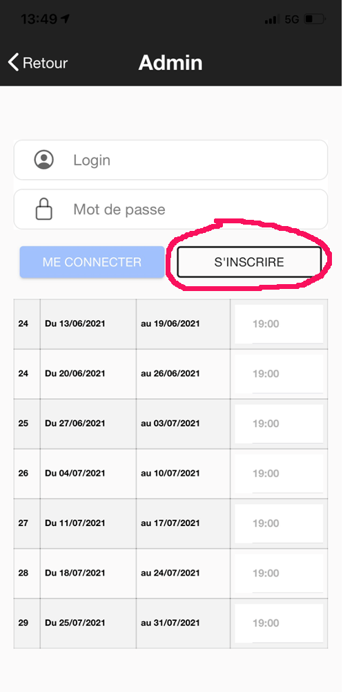 | Remarque: si une semaine n'est pas renseignée, aucun horaire n'apparaitra sur l'appli. | |||||